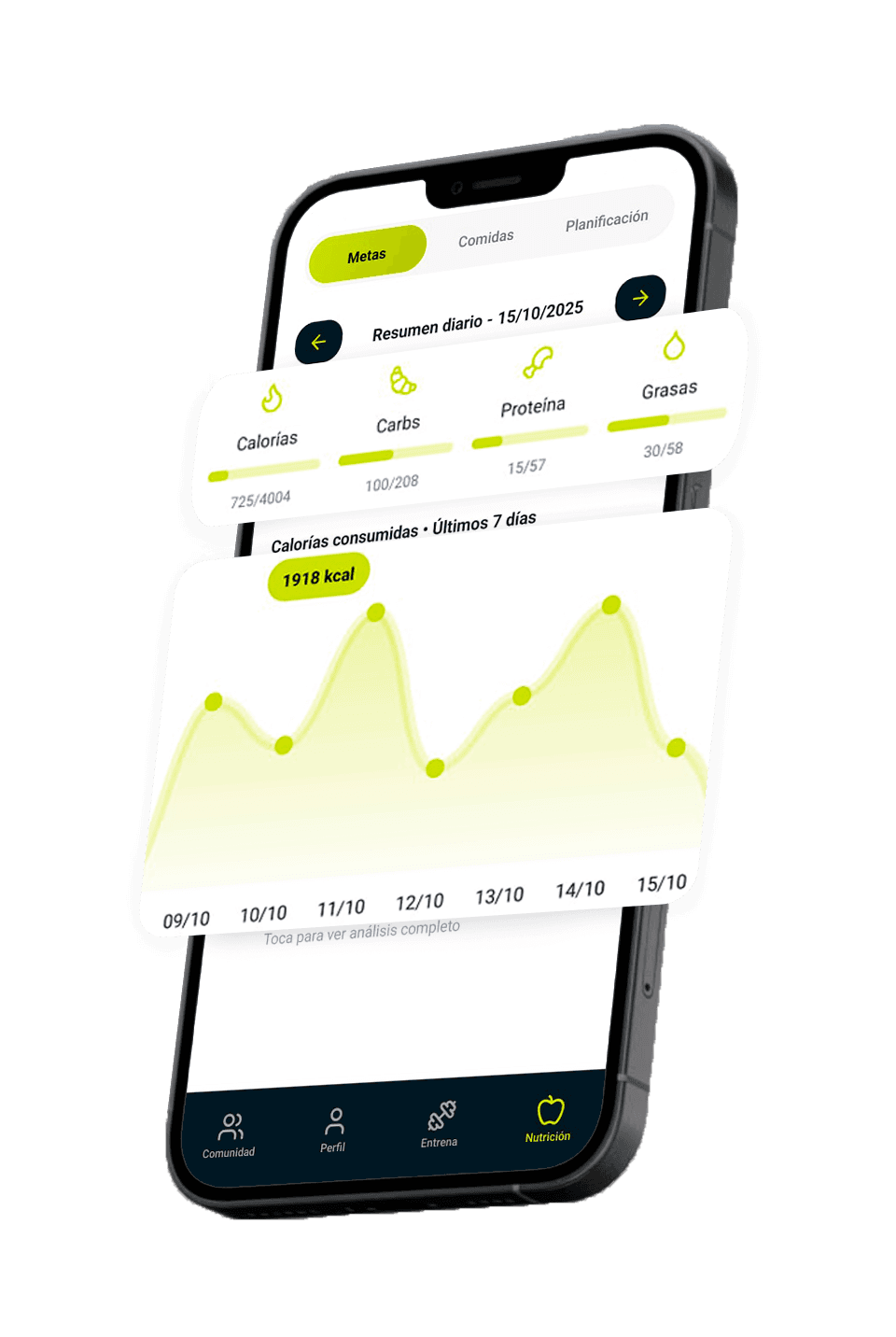 ✓ Objetivo calórico configurable